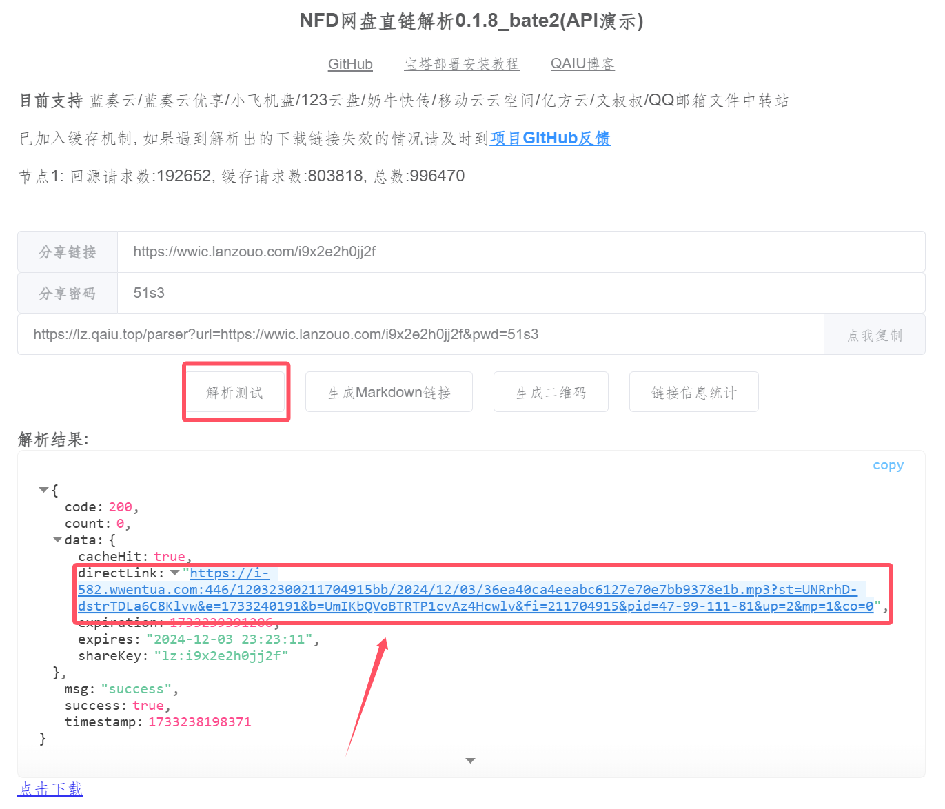 同时提供一个无需网盘的音频直链生成网站,不过限制较大,可以自己研究一下
