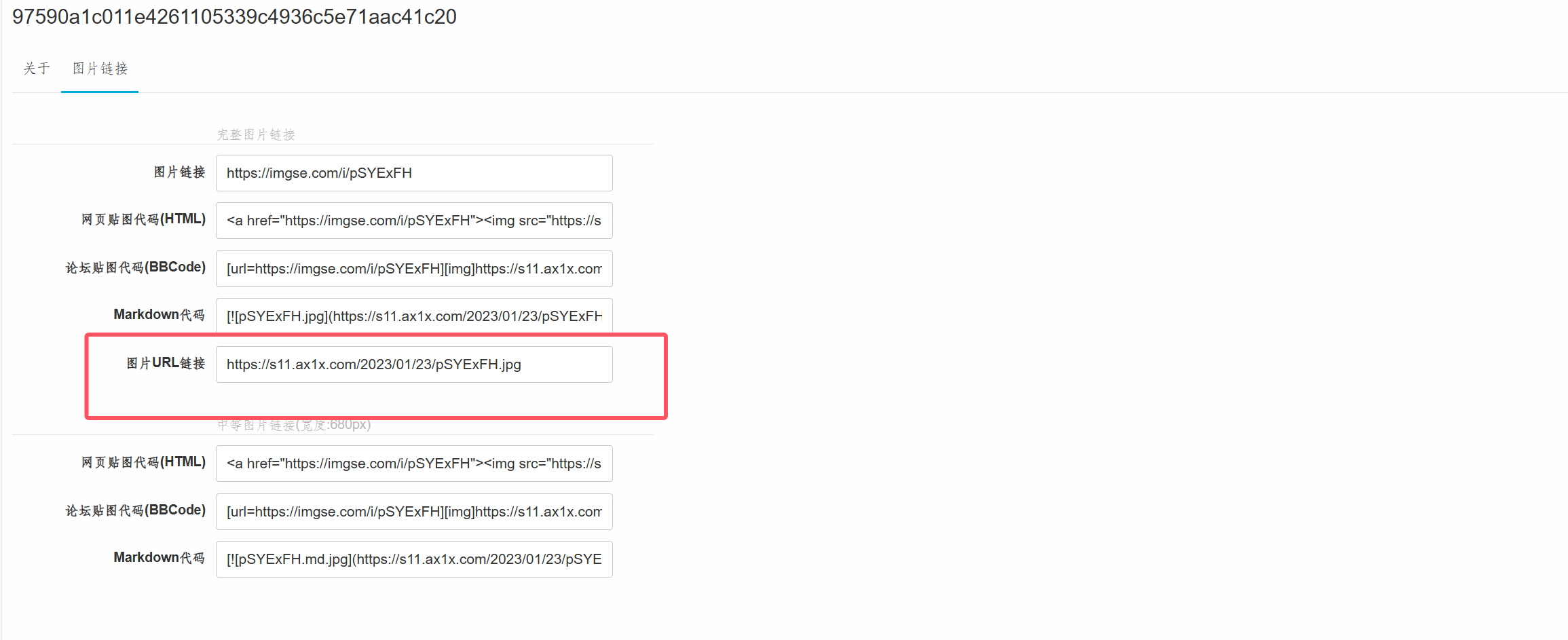 较小的图片只会出现上半部分,而图中圈出的URL链接,即为该图片的直链,将其复制,在编写文章时点击导航栏最左端的+号并选择图片一项