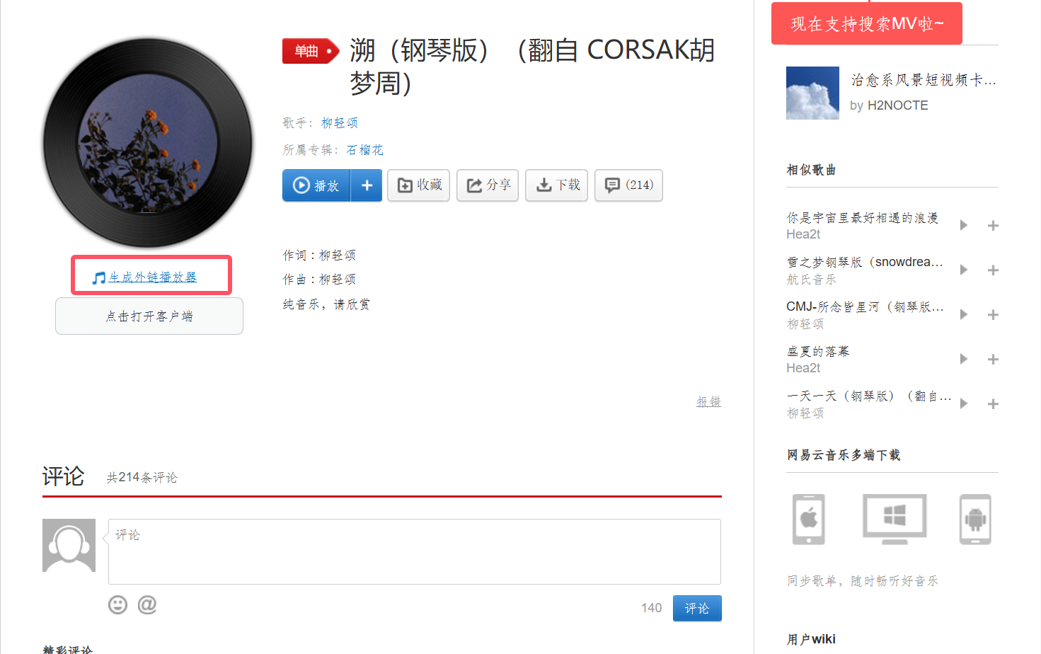 网易云插入:进入网易云的某首歌曲网页(可以通过客户端点击分享按钮复制链接进入)